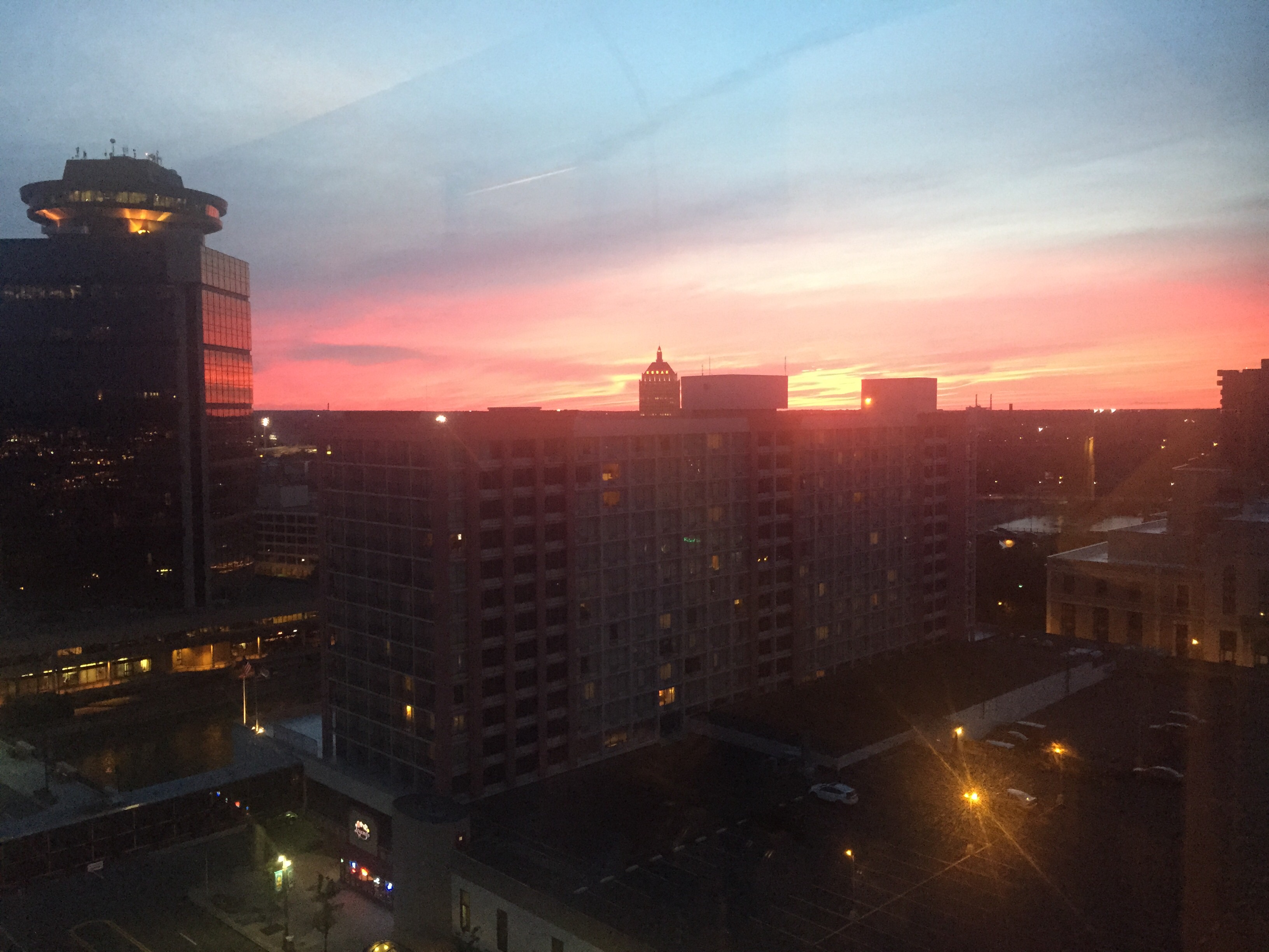 Ausklang eines gelungenen Tages mit Sonnenuntergang über Lake Ontario. Nächstes Spiel: Morgen früh um 7.30h gegen eines der USA/Kanada Select Teams.
